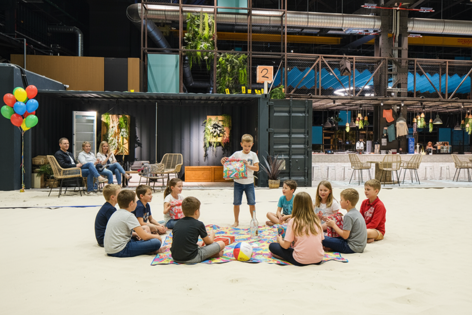 Der Kindergeburtstag findet im RheinRiff Düsseldorf statt – Europas größter Indoor-Beach mit echtem Sand und angenehmen 22 Grad das ganze Jahr über. So kann bei jedem Wetter gefeiert werden!
