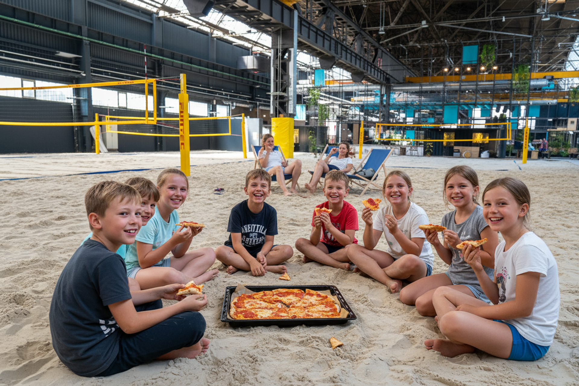 Euer Kindergeburtstag findet direkt auf einem unserer vier Indoor-Beachvolleyballfelder statt – komplett überdacht, warm und mit feinem Sand.