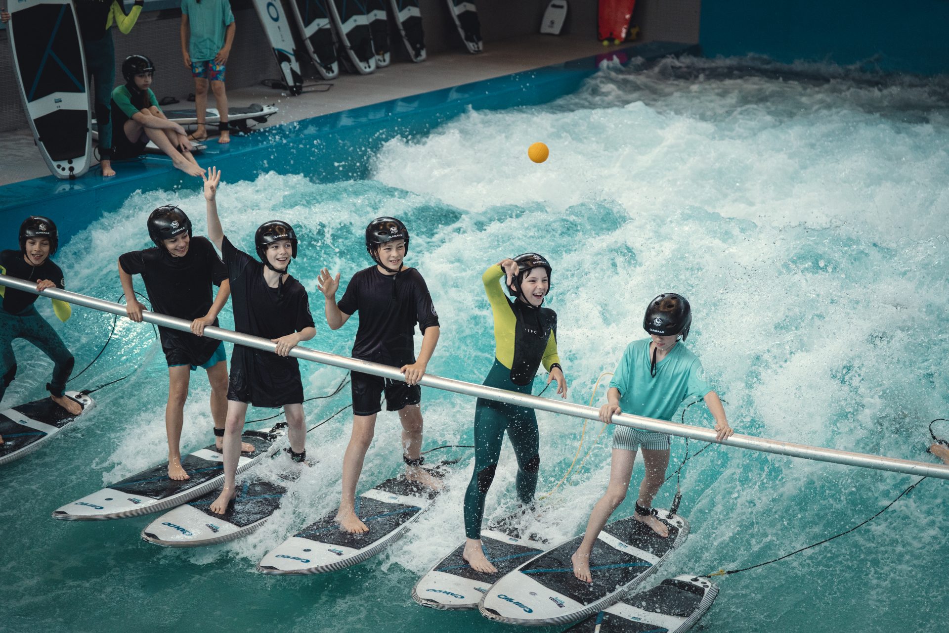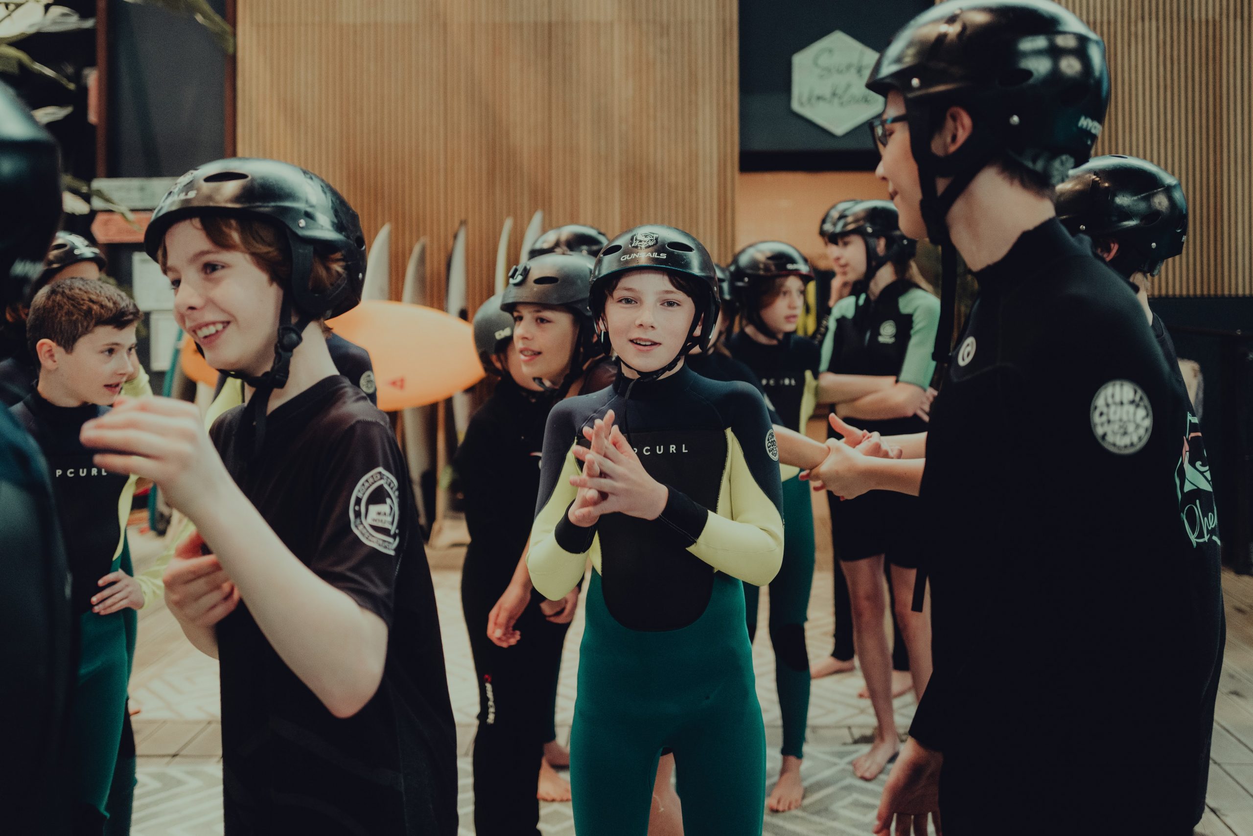 Zusätzlich möchten wir Schulen auf unsere beliebten Kids Camps in allen Ferien aufmerksam machen. Dort stehen Sport, Bewegung und Gemeinschaft im Vordergrund – mit einem besonderen Highlight: Surfen im Indoor-Becken.
